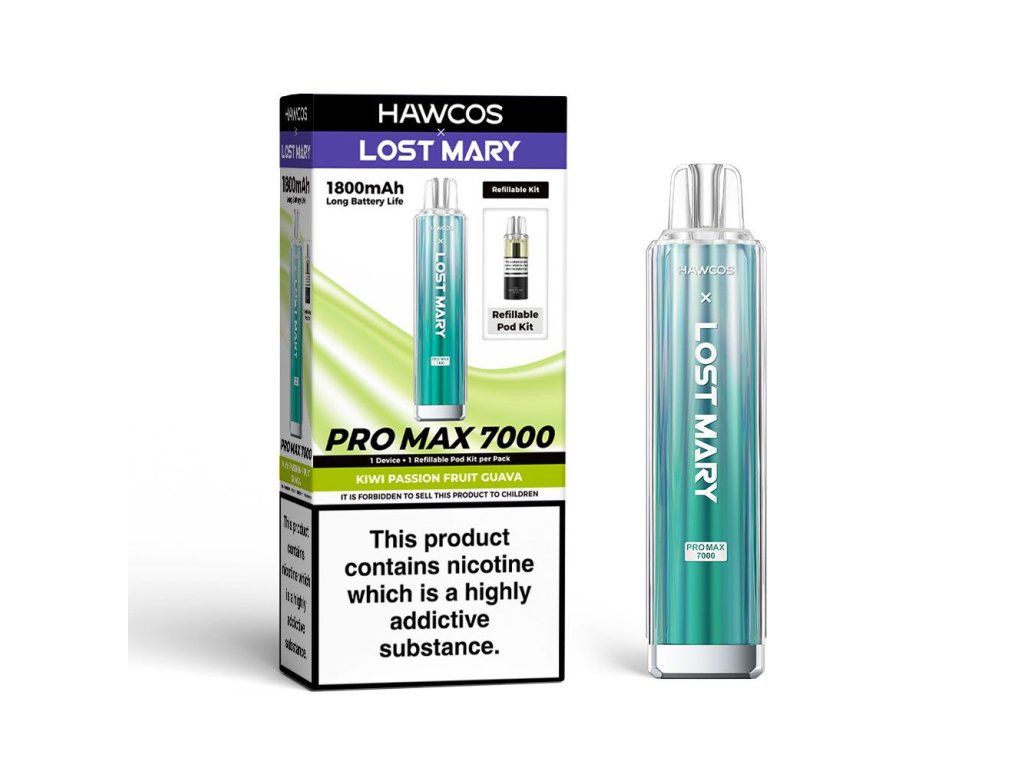 E-cigareta LOST MARY HAWCOS Pro Max 7K (ENG) 2ml|1800mAh|0.8Ω + E-Liq. s nik. soľou KIWI PASSION FRUIT GUAVA 10ml|20mg OC:16,90€