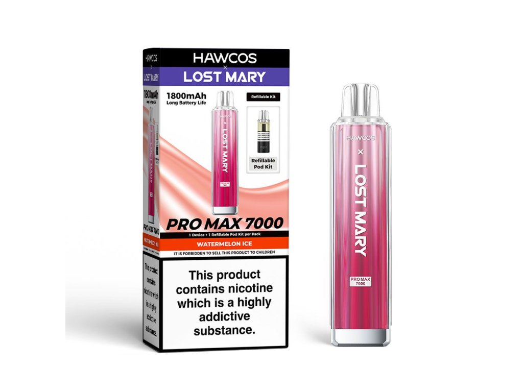 E-cigareta LOST MARY HAWCOS Pro Max 7K (ENG) 2ml|1800mAh|0.8Ω + E-Liq. s nik. soľou WATERMELON ICE 10ml|20mg OC:16,90€