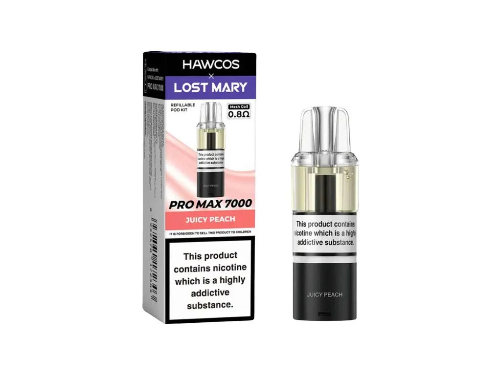 E-cigareta LOST MARY HAWCOS Pro Max 7K Predplnené pody (ENG) 2ml|0.8Ω - JUICY PEACH 10ml|20mg OC:12,90€
