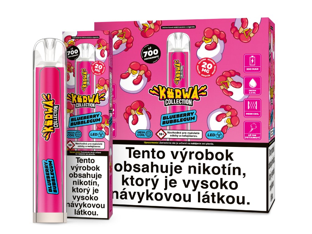 Jednoráz. E-cig. REYMONT K#RWA COLLECTION (SVK) BLUEBERRY BUBBLEGUM|700puff|20mg OC:8,90€