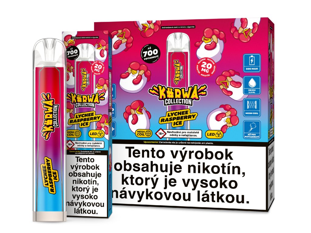 Jednoráz. E-cig. REYMONT K#RWA COLLECTION (SVK) LYCHEE RASPBERRY ICE|700puff|20mg OC:8,90€
