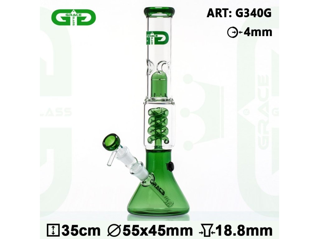 Sklenený icebong GRACE GLASS Green Boyz so špirálovým percolatorom|↕350mm|Ø110mm|SG19|zelený OC:74,90€